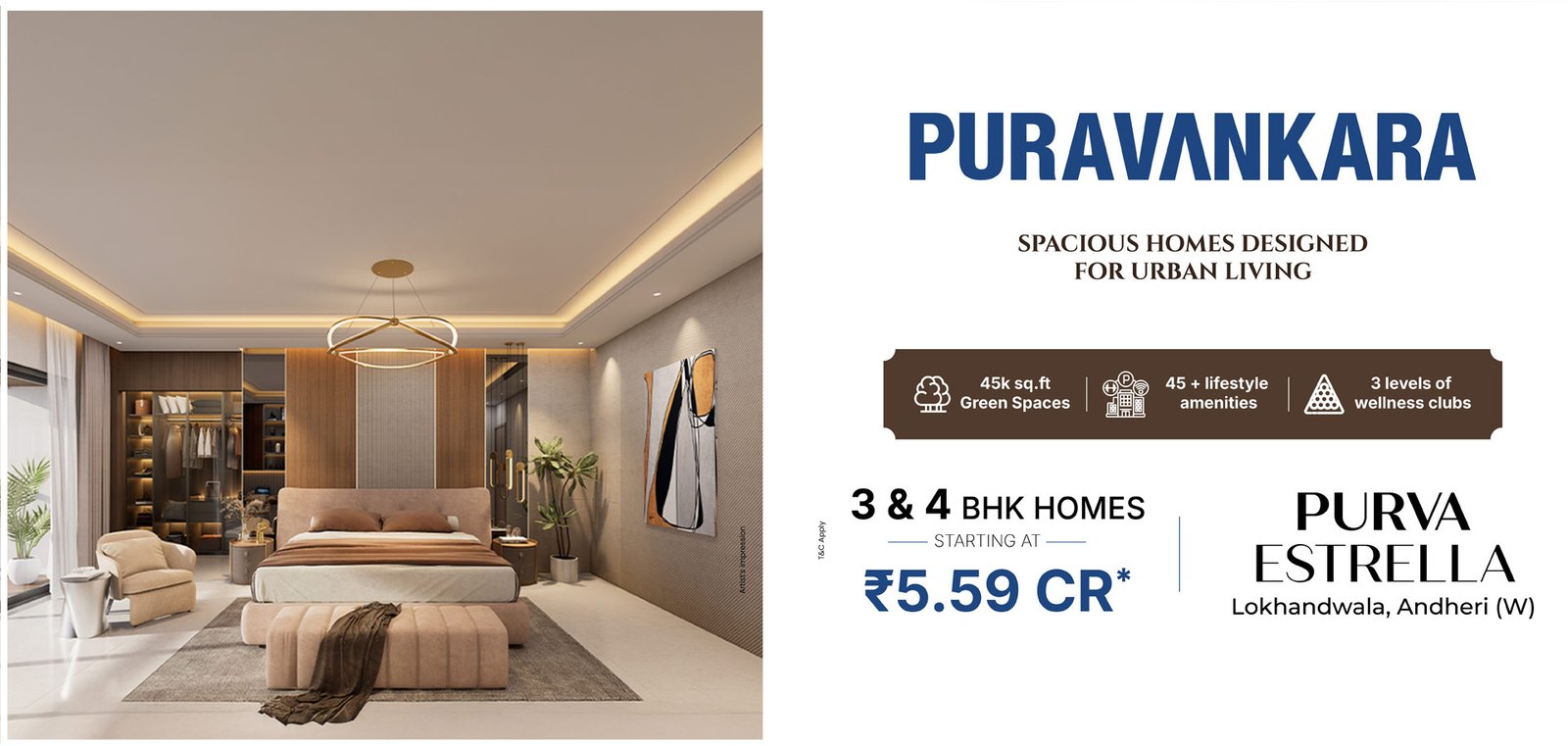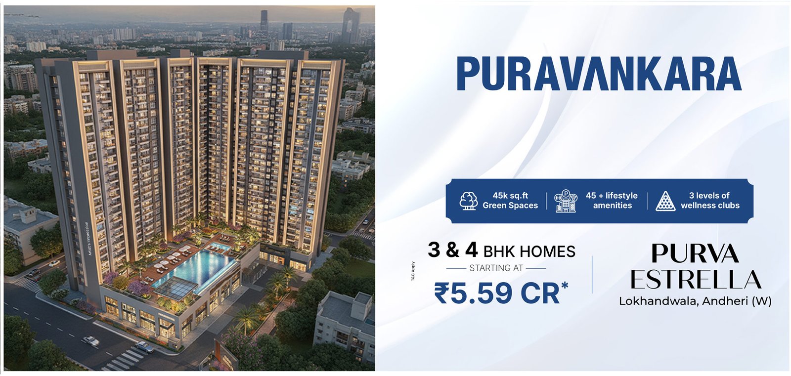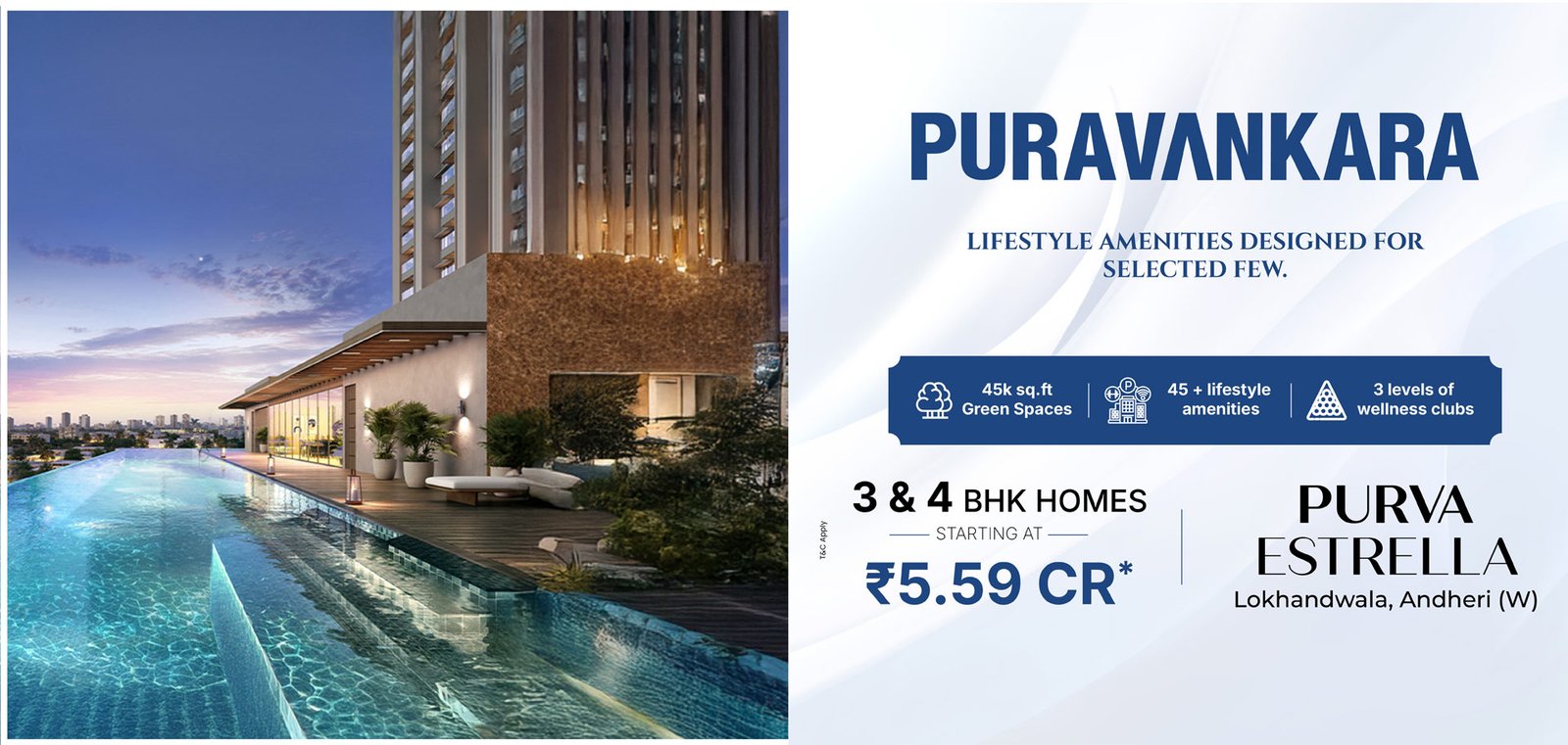 The above-mentioned prices are indicative Agreement values and are applicable from the 12th floor onwards for 3 & 4 Bed Luxury Residences and from the 13th floor onwards for 2 Bed Luxury Residences.